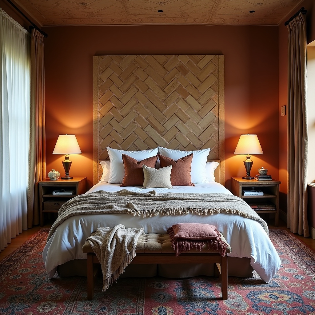 5. Bohemian Bedroom with Herringbone Decorative Wall
