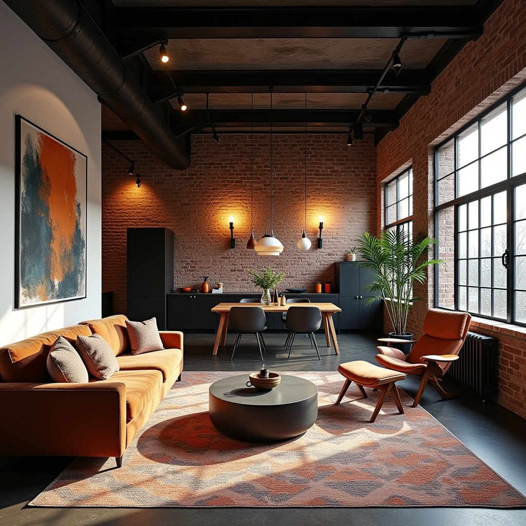 - Choose a patterned carpet that contrasts with industrial elements for added comfort.