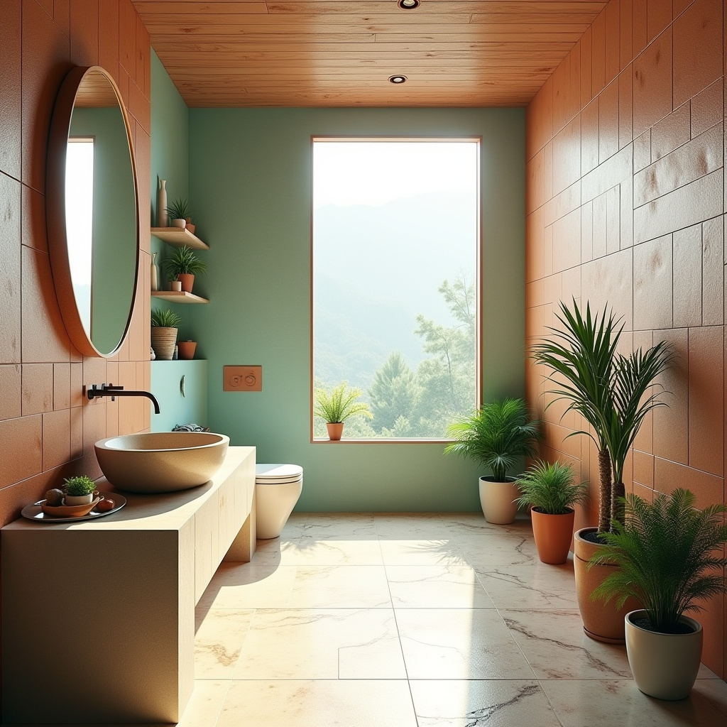 The focus on simplicity allows the rustic tiles to shine, showcasing their unique textures and colors. This design is perfect for those seeking a peaceful retreat, promoting relaxation and restfulness through its understated elegance.