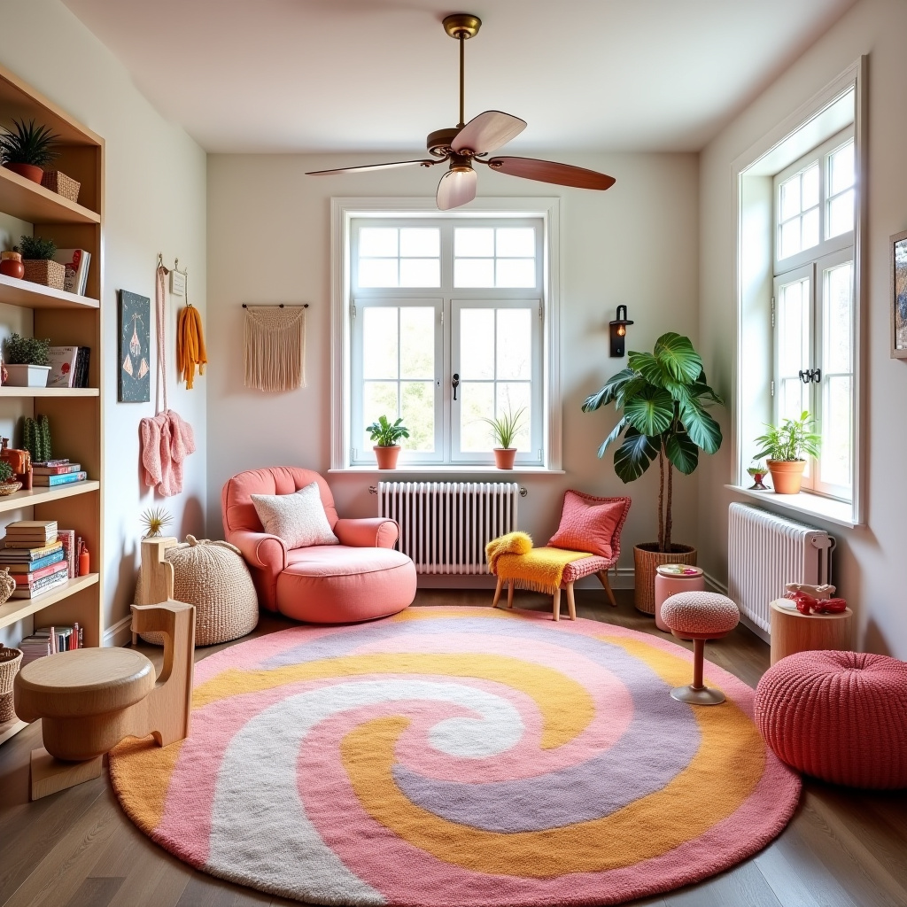 - Incorporate colorful wool rugs that reflect the playful nature of the space.
